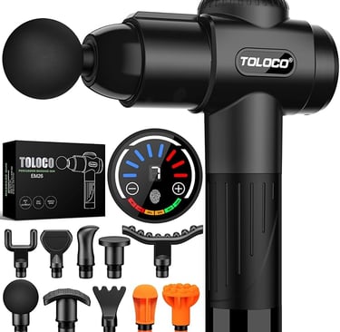 For anyone serious about recovery, the TOLOCO Deep Tissue Massage Gun is a must-have. This percussion massager is designed for athletes but works wonders for anyone looking to relieve sore muscles or reduce post-workout fatigue.